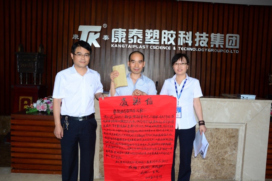 ?????? 在接收現(xiàn)場,集團(tuán)工會主席吳彬和人力資源中心經(jīng)理呂旭梅熱情的接過了王敏的感謝信,同時將全體康泰人的愛心捐款和康泰愛心基金撥款共計3萬余元轉(zhuǎn)交給了王敏本人,并祝愿他早日康復(fù),囑咐他一定要好好治病,早日回到康泰,回到工作中來。接過捐款,王敏的心情很激動。雖然他的身體還不適合大量運(yùn)動,但他還是堅持要親自到公司來遞上感謝信。他說,“因?yàn)橛腥w各級領(lǐng)導(dǎo)和員工最真摯的愛心伴我同行,使我看到了康泰公司美好的未來??堤┚褪俏业募遥M堤┕久魈旄訅汛?,更加美好!在這里,我代表我和我的家人最真誠的感謝公司及各位關(guān)心支持我的各位同仁、各位素不相識的人士!感謝!感謝!再感謝!”