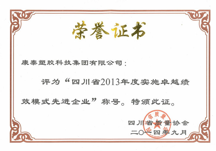 ?????? 卓越績效模式是80年代后期美國創(chuàng)建的一種世界級(jí)企業(yè)成功的管理模式,其核心是強(qiáng)化組織的顧客滿意意識(shí)和創(chuàng)新活動(dòng),追求卓越的經(jīng)營績效,引導(dǎo)企業(yè)持續(xù)改進(jìn),是不斷提升企業(yè)管理水平和綜合競爭能力的有效途徑??堤┘瘓F(tuán)自2009年開始申報(bào)“省實(shí)施卓越績效模式先進(jìn)企業(yè)”以來,連續(xù)六年獲此殊榮,實(shí)現(xiàn)了康泰集團(tuán)質(zhì)量管理目標(biāo)。