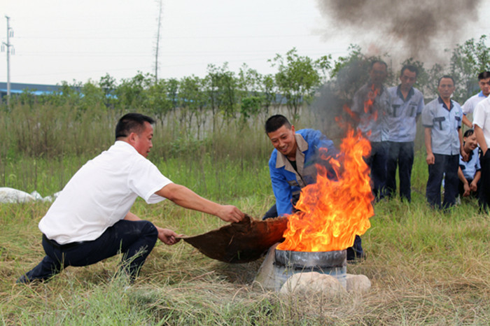 員工在實(shí)戰(zhàn)中學(xué)習(xí)滅火器的使用方法