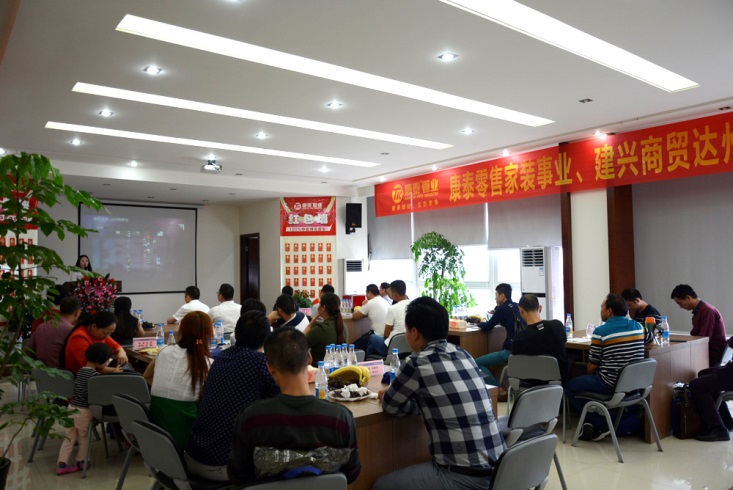 金秋九月,丹桂飄香。9月21日下午15時,康泰零售家裝事業(yè)+達(dá)州建興商貿(mào)達(dá)州區(qū)域?qū)稣猩?、推廣會議在康泰集團(tuán)總部5樓會議室舉行。達(dá)州建興商貿(mào)總經(jīng)理朱宏建,以及康泰集團(tuán)副總裁鄭光鏵、副總裁張文霖,零售事業(yè)部總經(jīng)理趙謙等出席會議。達(dá)州區(qū)域23余戶家裝零售商客戶應(yīng)邀參加會議。會議現(xiàn)場下單客戶19家,占到了參會總?cè)藬?shù)的80%以上,總訂貨款50多萬元,會議取得圓滿成功。