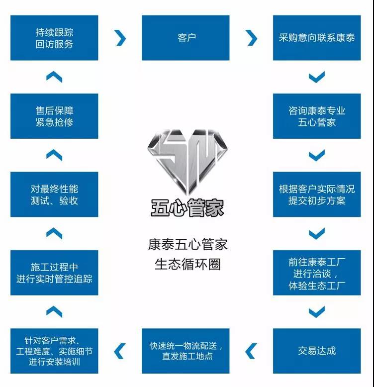 電工管道除安全質(zhì)量需要嚴(yán)格把關(guān)外,產(chǎn)品售后也是一大重點(diǎn)。良好的售后不僅能為安全增添一層保護(hù)膜,更能為家庭生活免去了安裝后的種種擔(dān)憂。因此,康泰塑膠為完善產(chǎn)品系統(tǒng)特意推出一站式服務(wù)“五心管家”,他們投入大量資源建立了一套健全完善的售后服務(wù)體系,不僅做到在產(chǎn)品質(zhì)量上嚴(yán)格篩選讓客戶放心外,在售后的回訪、服務(wù)中也以最大可能性避免安全隱患,讓客戶安心??堤漠a(chǎn)品的購買、實(shí)地安裝和售后都極具專業(yè)化的為用戶提供了全程的服務(wù)支持,他們的每一個(gè)步驟都以用戶為中心,為客戶爭(zhēng)取利益最大化。這樣的措施不但建立了與消費(fèi)者之間溝通的橋梁,也增強(qiáng)了與用戶之間的信任。