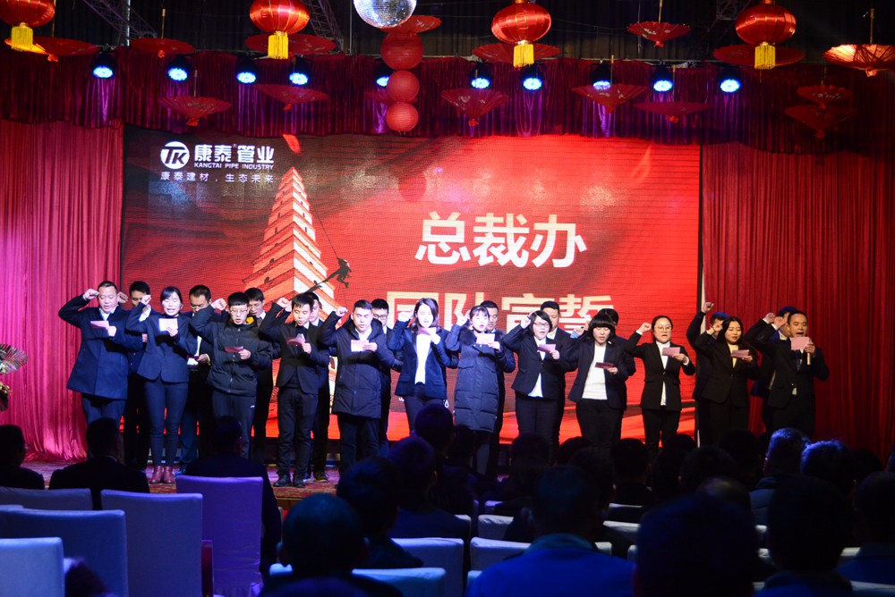 本次年會(huì)的主題是,凝聚發(fā)展 未來更好。凝聚發(fā)展:凝聚戰(zhàn)略、凝聚思維、凝聚目標(biāo)、上下貫通、發(fā)展共贏;未來更好:轉(zhuǎn)型升級(jí)、堅(jiān)定戰(zhàn)略、優(yōu)化策略、強(qiáng)化執(zhí)行、未來更好。會(huì)議的目的是,總結(jié)2018年度的業(yè)績、亮點(diǎn)和不足,宣貫集團(tuán)五年戰(zhàn)略、三年規(guī)劃及2019年度重點(diǎn)工作方向;樹立標(biāo)桿、提升員工的凝聚力和歸屬感;同時(shí),進(jìn)行宣誓、動(dòng)員,激發(fā)全體康泰人奮發(fā)向前的氛圍及正能量。
