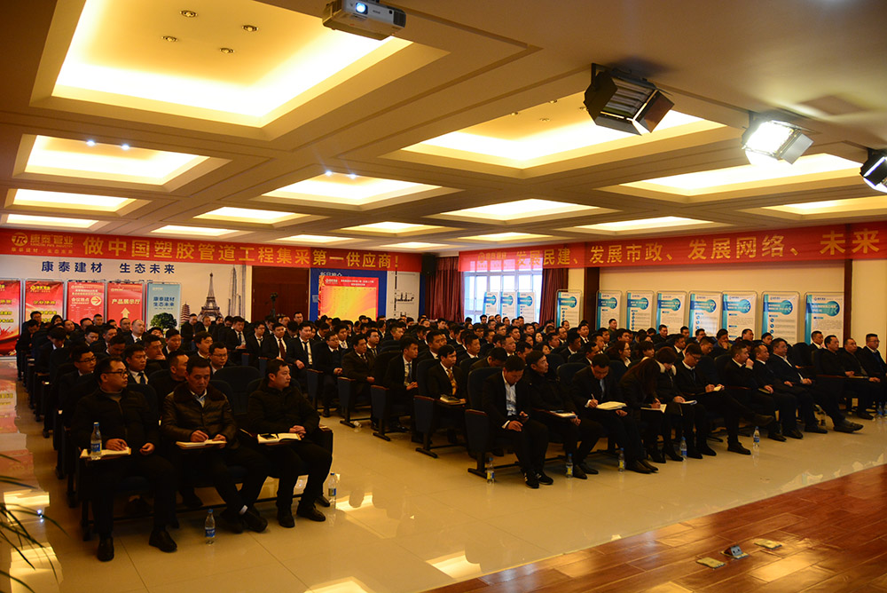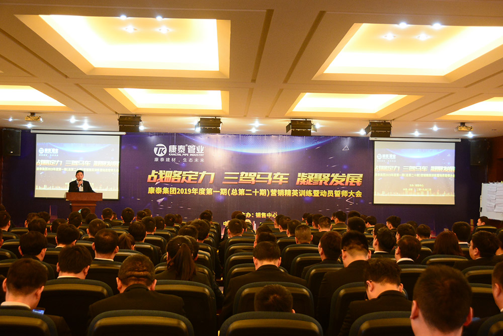 在全場熱烈的掌聲中,林總裁上臺作了熱情洋溢的新年致辭和動員講話。林總裁首先對集團公司在2018年取得的優(yōu)異業(yè)績向全體銷售人員的付出表示了感謝。林總裁表示,康泰的發(fā)展定位就是做中國工程集采第一供應商,2019年是充滿挑戰(zhàn)的一年,也是為實現(xiàn)三年目標打基礎的一年。我們要充分發(fā)揮三駕馬車——發(fā)展民建、發(fā)展網絡、發(fā)展市政的優(yōu)勢,切實做到品牌強大、技術強大、網絡強大、團隊強大,提升公司的核心競爭力。