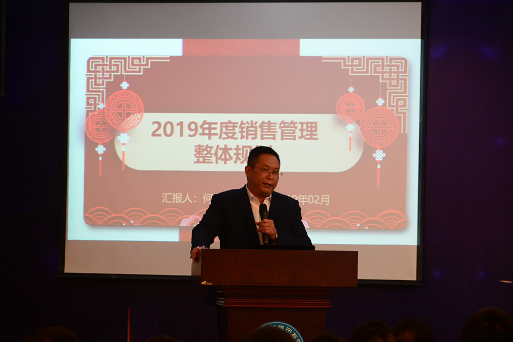 14時30分,會議正式開始。會上,銷售總監(jiān)何朝暉首先向大會作了《母公司銷售2018年度工作總結暨2019年度工作規(guī)劃》,進一步總結2018年度目標達成、亮點及不足,清晰2019年度目標,貫徹“發(fā)展民建(戰(zhàn)略)、發(fā)展市政、發(fā)展網絡、整體營銷”的方針,部署策略舉措,代表全體營銷人員莊重承諾保證完成2019年度銷售目標,并為后續(xù)可持續(xù)發(fā)展儲備資源打下堅實基礎。